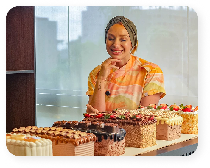 Com o curso Festival de Fatias, você vai aprender as massas, os recheios, a montagem, a decoração, até a venda presencial,  e tudo o que precisa para organizar o seu próprio festival do zero.